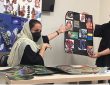 پشت مبل و در کنار میز غذاخوری یک قفسه فلزی سیاه و سفید دکوری بر روی یک کمد برای ذخیره سازی قرار دارد که به عنوان پارتیشنی قسمت کنار پنجره را از ناهار خوری تفکیک رده و حوزه دنجی همراه با نور کافی برای استراحت، مطالعه و نوشیدن چای یا قهوه در حین تماشای منظره بیرون ایجاد خواهد کرد که این قسمت دیوار با طرح گیاهان در زمینه سفید رنگ پوشیه شده است.